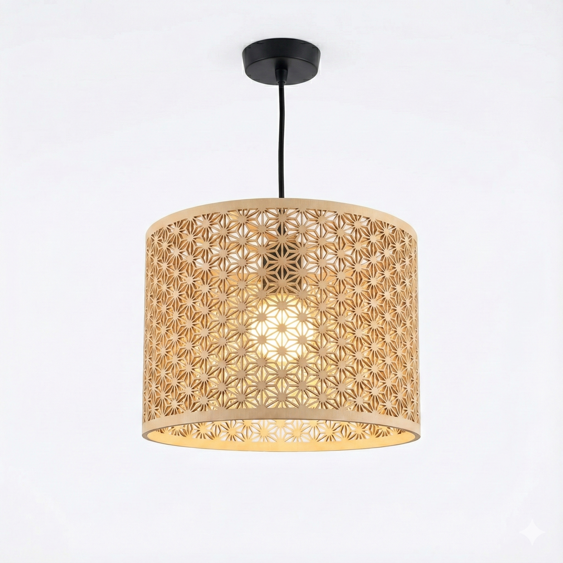La lámpara de techo Kumiko combina tradición y tecnología en una pieza de iluminación decorativa única. Su patrón geométrico, inspirado en las celosías japonesas Kumiko, crea un juego de luces cálido y envolvente que transforma cualquier estancia.