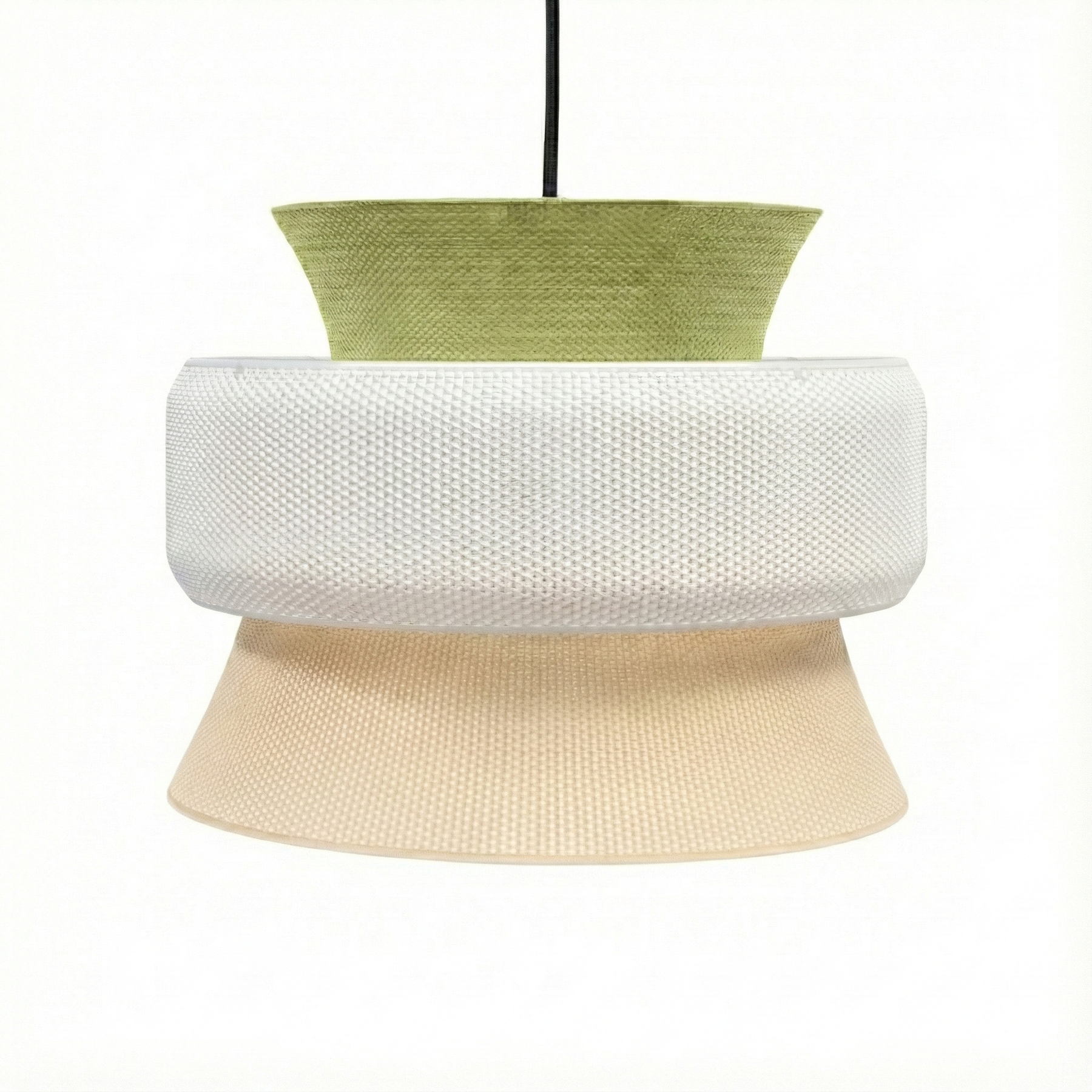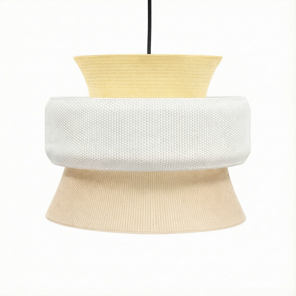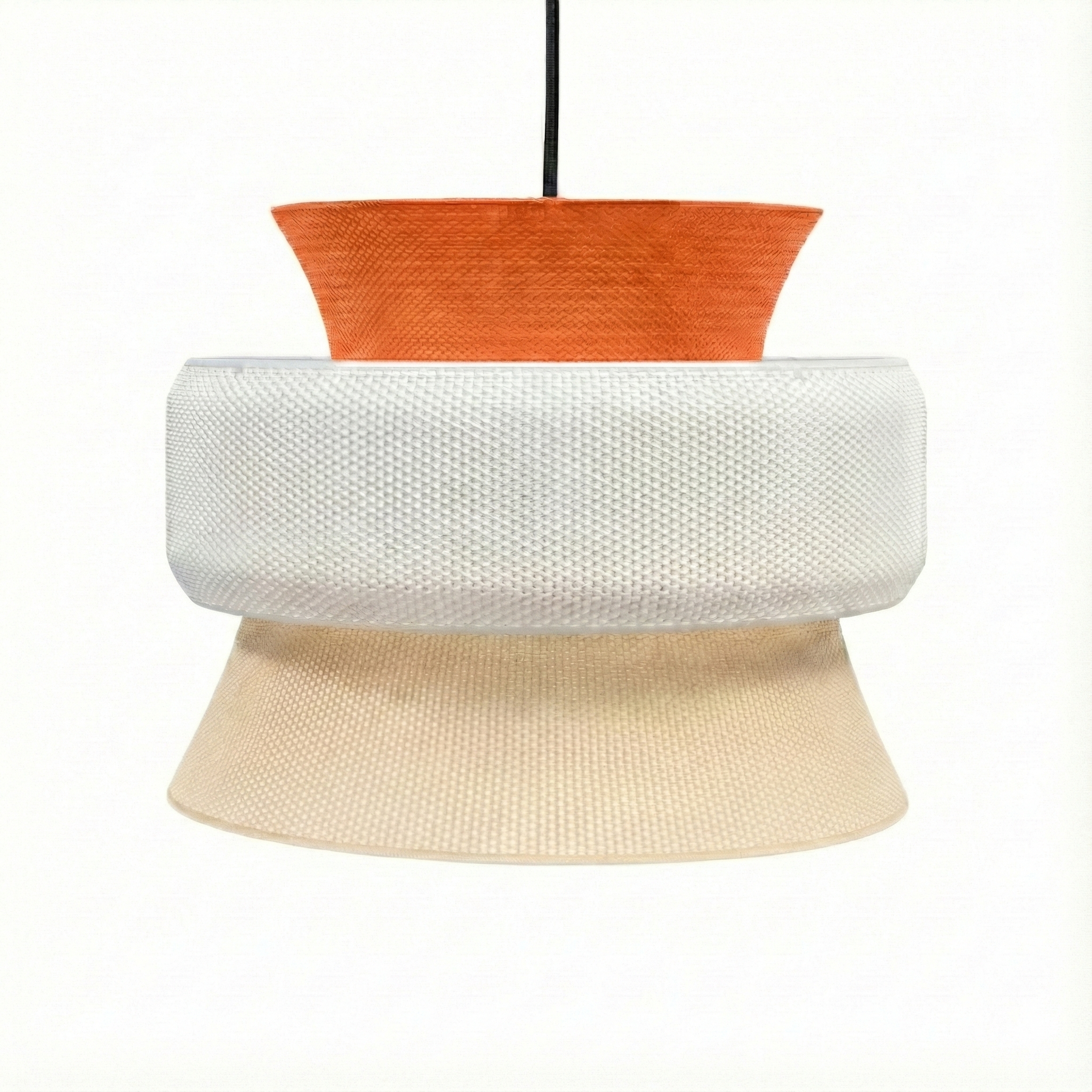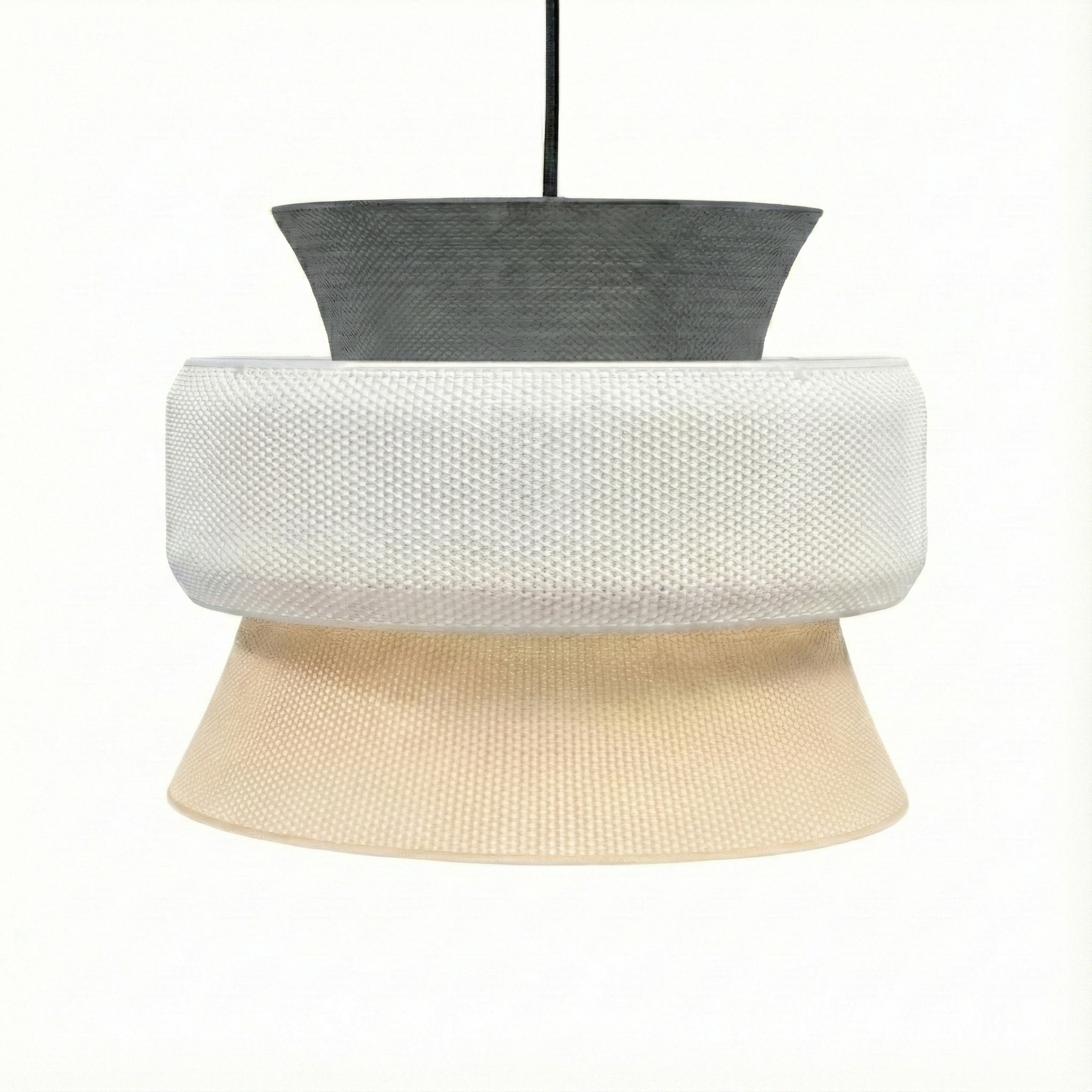 Fabricada en PETG mediante impresión 3D, Triam destaca por su acabado texturizado, inspirado en tejidos naturales, que crea un juego de luces y sombras especialmente acogedor cuando está encendida. Cada lámpara se produce bajo demanda, cuidando cada detalle y reduciendo el desperdicio de material.