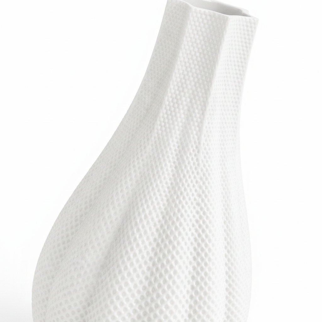 Su silueta fluida y su textura sutil aportan volumen y carácter, creando un objeto decorativo contemporáneo y atemporal.