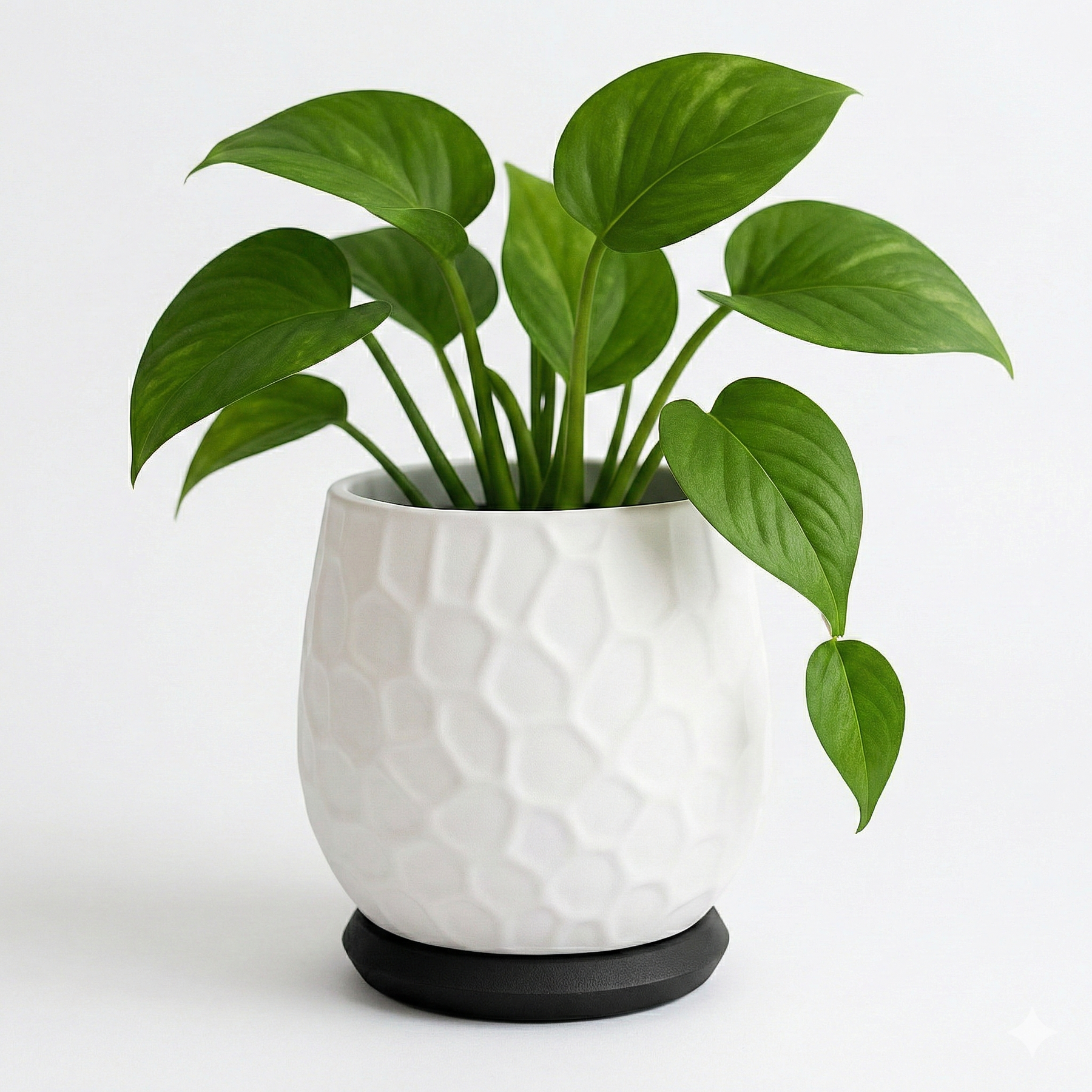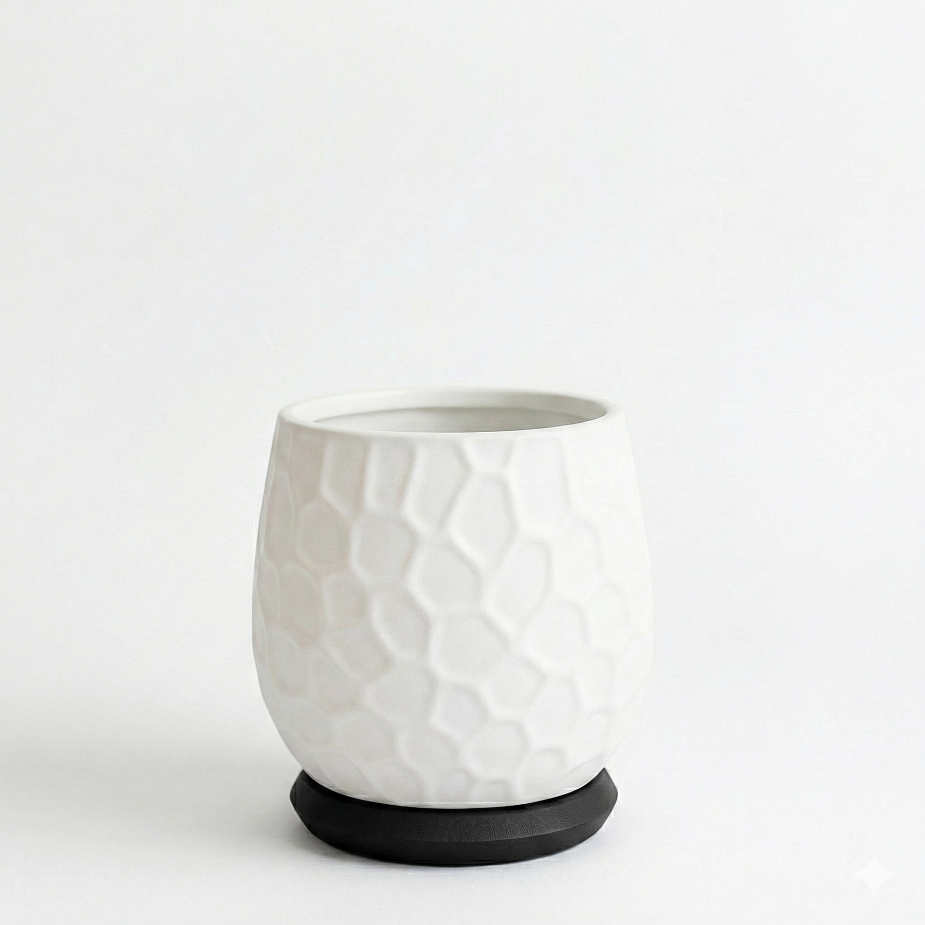 La maceta Nido combina una textura suave inspirada en formas naturales con un diseño limpio y contemporáneo. Su tamaño compacto la convierte en la opción perfecta para escritorios, estanterías, mesas auxiliares o rincones pequeños.